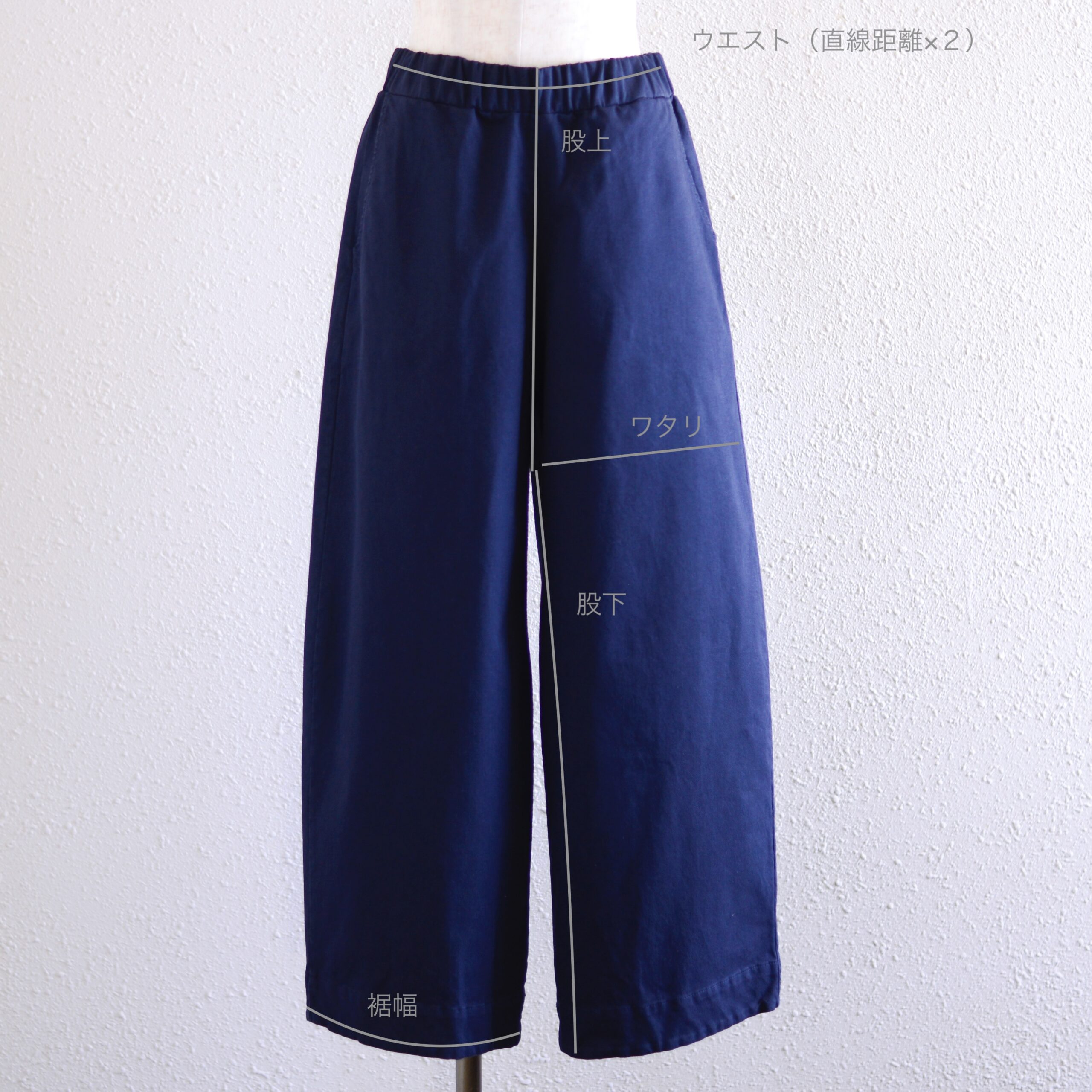 ボトムスの場合は、「ウエスト」「股上」「股下」「ワタリ」「裾幅」を確認しましょう。
